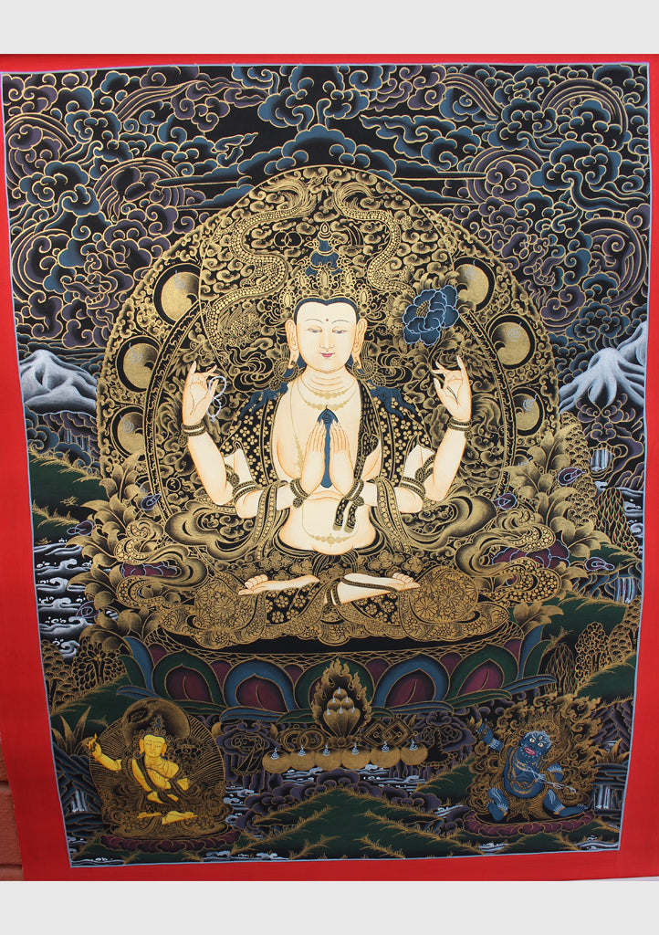 Be the first to review “Black Chenrezig with Dragon Thangka Painting”