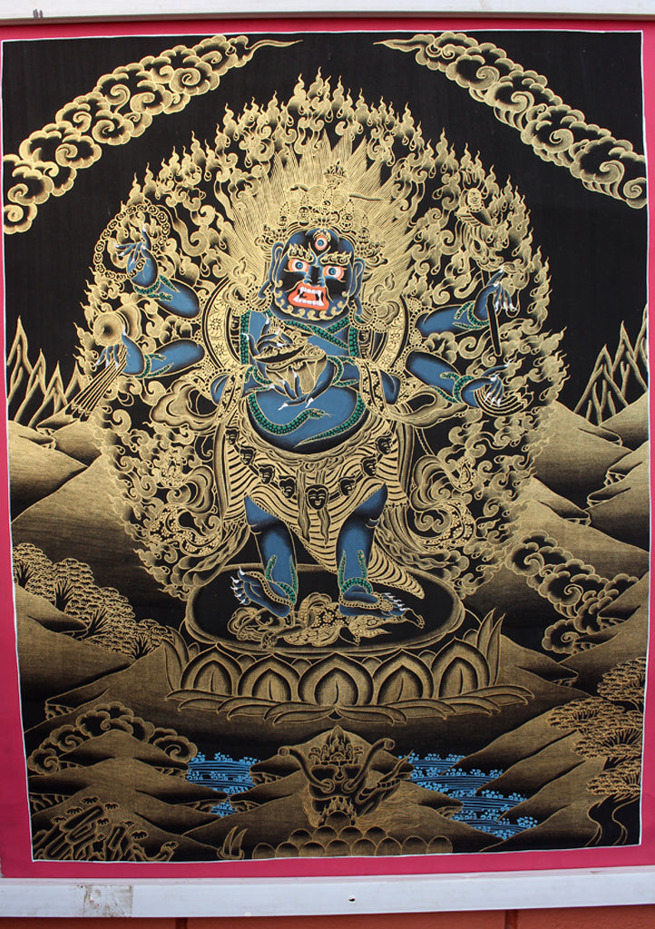 Be the first to review “Black Mahankal Deity Gold Tonned Thangka Painting”