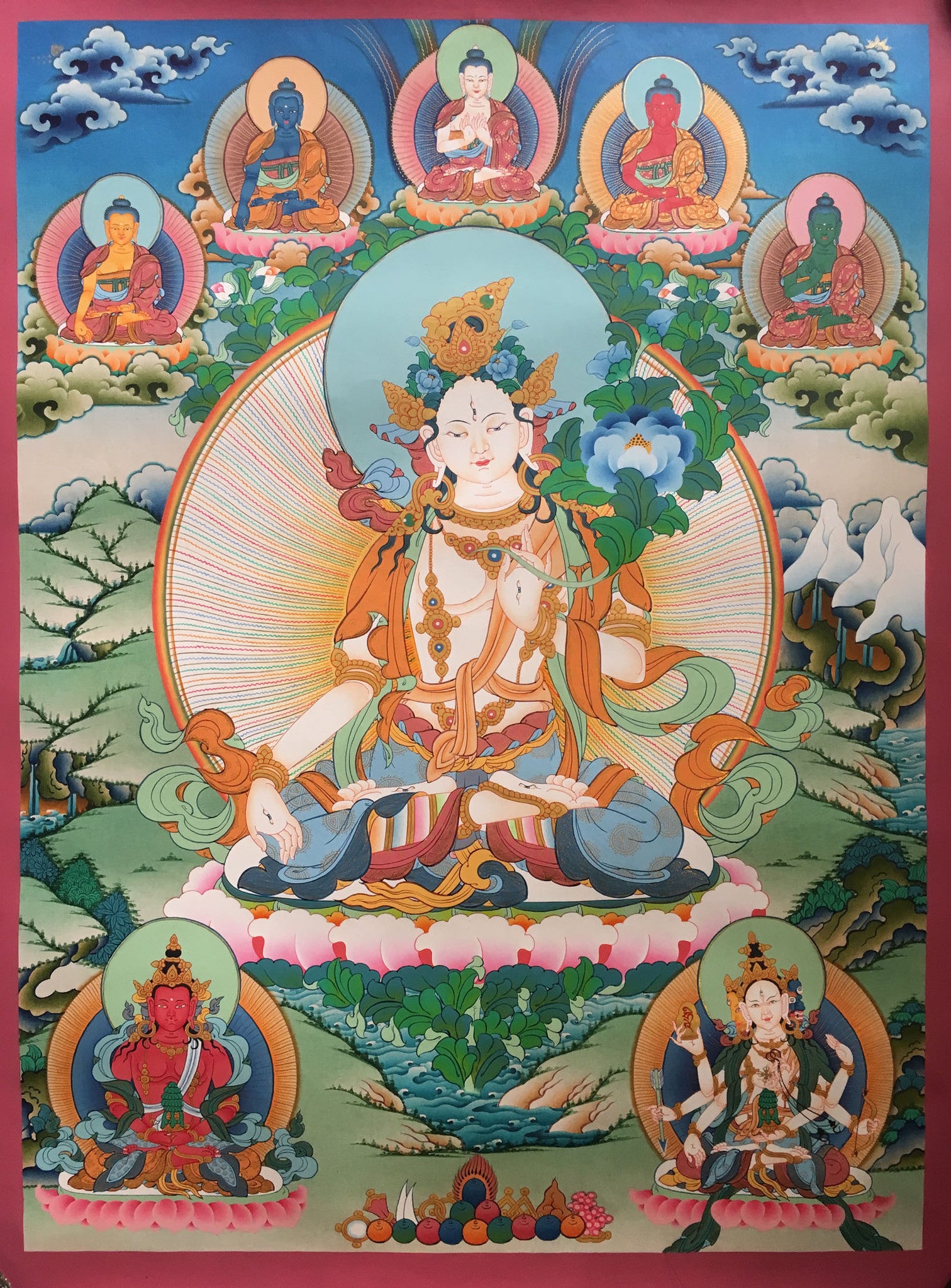Be the first to review “White Tara with Five Buddhas and Bodhisattvas”